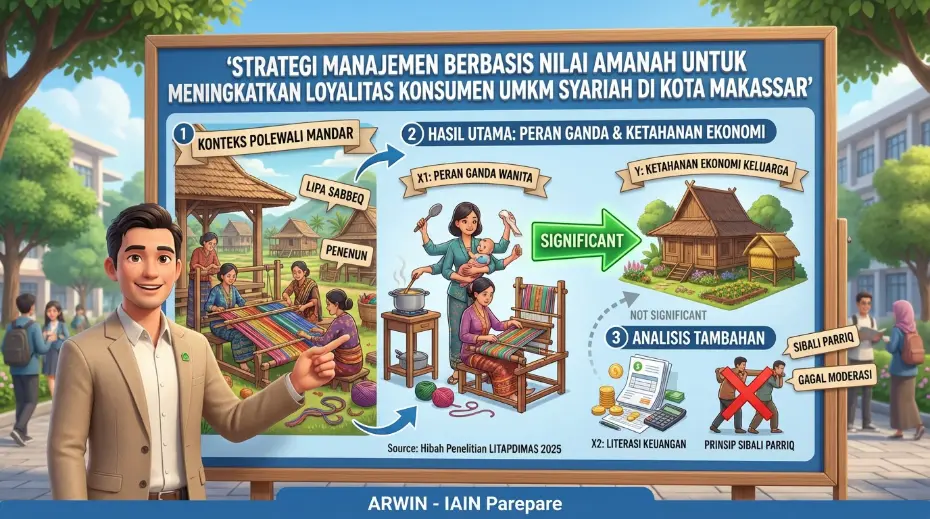 Namun, Arwin dan tim peneliti menemukan bahwa peran ganda ini justru memberikan kontribusi kuat terhadap pendapatan keluarga, terutama ketika perempuan mampu mengelola kedua perannya dengan baik. Hasil analisis data menunjukkan bahwa peran ganda wanita memiliki pengaruh signifikan terhadap ketahanan ekonomi keluarga. Ini berarti bahwa kemampuan perempuan untuk menyeimbangkan tanggung jawab domestik dan produktif secara langsung memperkuat stabilitas keuangan keluarga, membantu mereka menghadapi guncangan ekonomi, dan memenuhi kebutuhan dasar secara berkelanjutan.