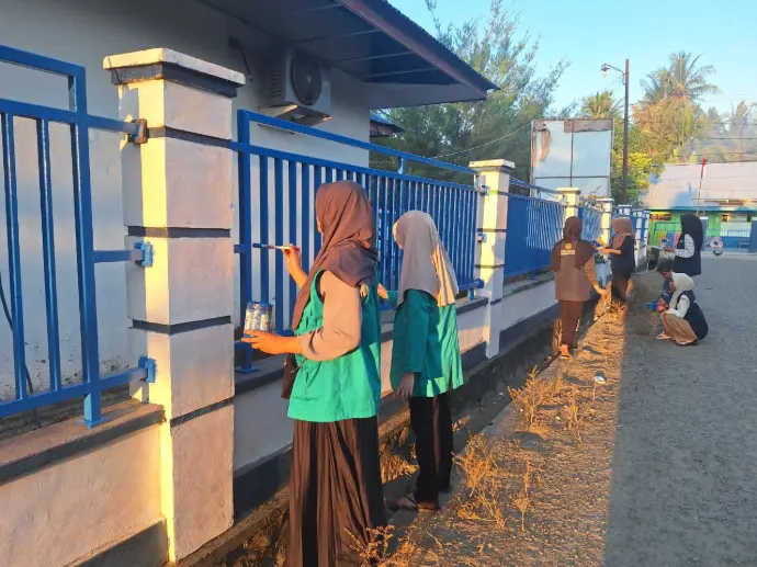 Sebelum pengecatan dimulai, area sekitar pagar dibersihkan dan cat lama dikupas agar hasil pengecatan lebih rapi dan tahan lama. Proses ini dilakukan secara bersama-sama, dengan peran yang dibagi agar setiap titik pagar mendapat perhatian yang cukup.