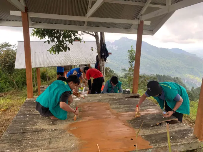Pembuatan tranggulasi juga menjadi bagian dari pembenahan. Mahasiswa bersama warga memasang patok-patok jalan sebagai penanda jalur pos pendakian. Inisiatif ini bertujuan mempermudah wisatawan dalam menikmati keindahan alam Sangbua tanpa kesulitan menemukan jalur yang tepat. Keterbatasan alat, kendaraan, dan kondisi cuaca sempat menjadi kendala dalam pelaksanaan kegiatan. Meskipun demikian, semangat kebersamaan menjadi kekuatan utama. Kerja sama yang terjalin antara mahasiswa dan masyarakat membuat program tetap berjalan lancar hingga mencapai hasil yang diharapkan.