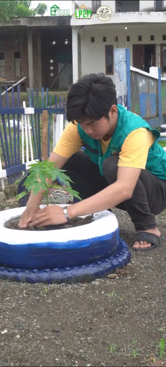 Mahasiswa menanam berbagai jenis pohon, termasuk tanaman obat herbal seperti jahe, kunyit, lengkuas, serta pohon pepaya. Penanaman dilakukan secara sistematis dengan memperhatikan jarak tanam, kondisi tanah, dan cahaya agar tanaman dapat tumbuh optimal.