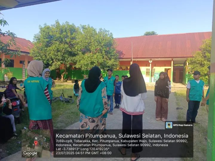 LP2M IAIN Parepare---Mahasiswa KKN Mandiri IAIN Parepare Posko 20 melaksanakan kegiatan pelatihan gerak jalan bagi siswa-siswi MIS DDI Ading, Lingkungan Ading, Kelurahan Tobarakka, Kecamatan Pitumpanua, Kabupaten Wajo pada Rabu, 23 Juli 2025. Kegiatan ini digelar sebagai persiapan menghadapi lomba gerak jalan dalam rangka peringatan Hari Ulang Tahun Kemerdekaan Republik Indonesia ke-80.
