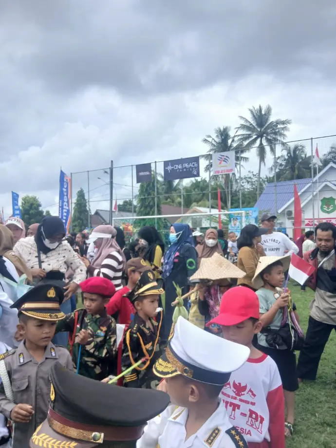 Anak-anak sekolah turut memeriahkan karnaval dengan membawa bendera, menampilkan tarian, dan yel-yel semangat kemerdekaan. Aksi mereka mendapat sambutan hangat dari masyarakat yang memadati rute utama desa. Rombongan karnaval bergerak mengelilingi desa sesuai rute yang telah ditentukan. Antusiasme warga terlihat dari sorak-sorai dan tepuk tangan yang menyemangati setiap peserta. Kegiatan berlangsung lancar tanpa kendala dan diakhiri dengan ucapan terima kasih kepada semua pihak yang telah berpartisipasi.