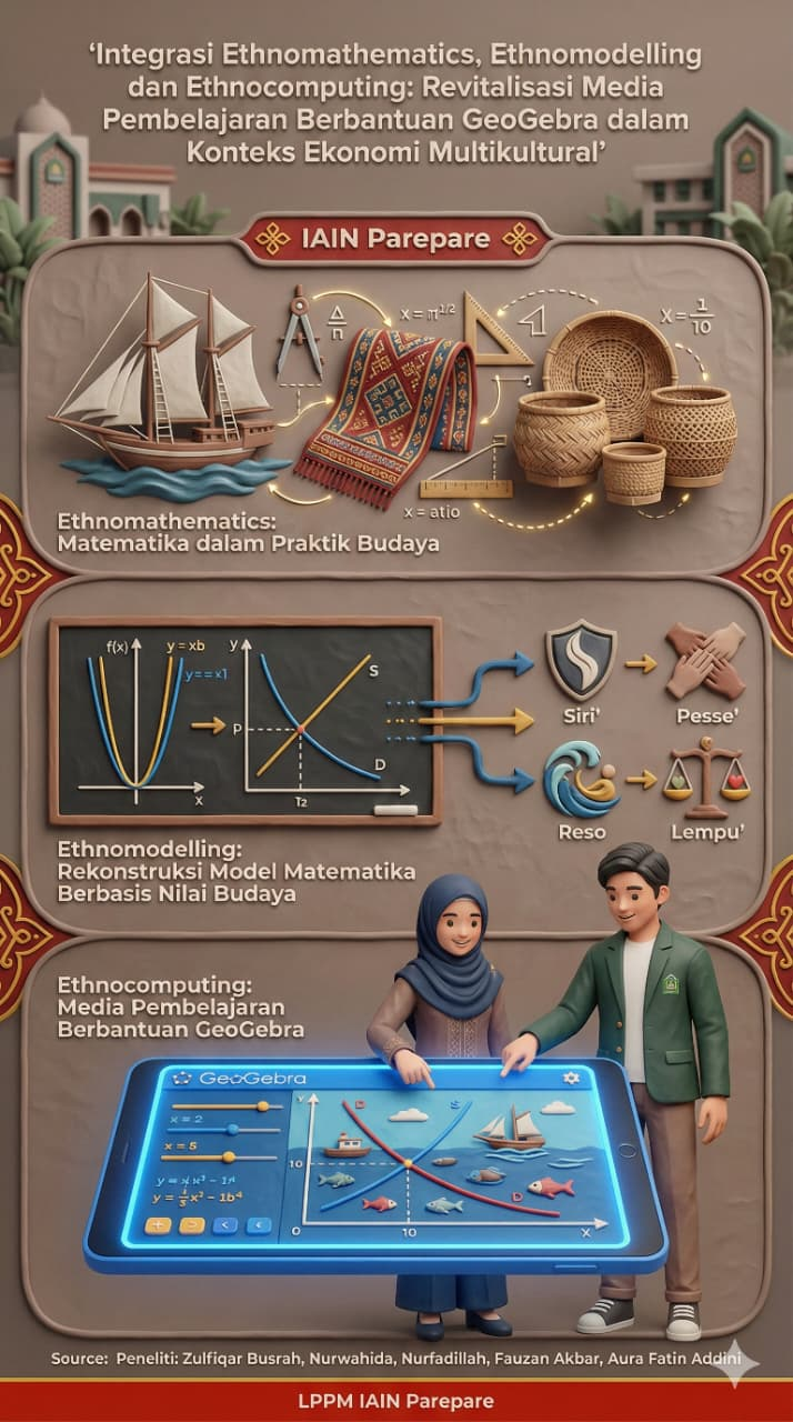 Parepare,  Media Publikasi LP2M IAIN Parepare - Tim peneliti dari IAIN Parepare mengembangkan media pembelajaran matematika ekonomi berbasis nilai budaya Bugis-Makassar melalui integrasi etnomatematika, ethnomodelling, dan ethnocomputing yang memanfaatkan teknologi GeoGebra.