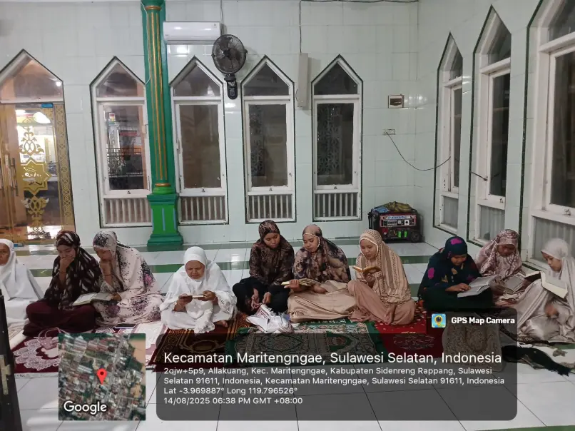 LP2M IAIN Parepare---Jamaah Masjid Baitul Makmur Desa Allakuang melaksanakan kegiatan yasinan rutin setiap malam Jumat, Kamis, 14 Agustus 2025. Kegiatan ini diikuti oleh masyarakat sekitar dan mahasiswa KKN Reguler Posko 32 yang turut hadir sebagai bagian dari pengabdian masyarakat sekaligus mendukung kelancaran acara.