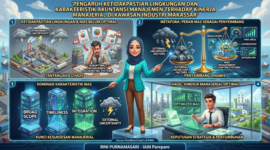 Pertanyaan-pertanyaan krusial ini menjadi sorotan dalam riset berjudul “Pengaruh Ketidakpastian Lingkungan dan Karakteristik Akuntansi Manajemen terhadap Kinerja Manajerial di Kawasan Industri Makassar” yang dilakukan oleh Rini Purnamasari, Besse Nurhawaisa, dan Tita Rizky Aulia dari Institut Agama Islam Negeri Parepare. Studi ini secara mendalam mengupas interaksi kompleks antara lingkungan bisnis yang tidak menentu dan sistem informasi akuntansi dalam membentuk efektivitas manajer di salah satu pusat industri penting di Indonesia.